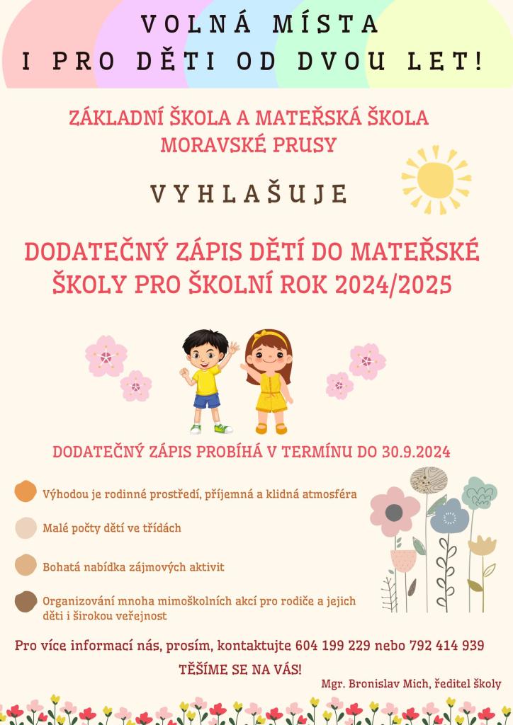 Dodatečný zápis dětí do Mateřské školy pro školní rok 2024/2025 1