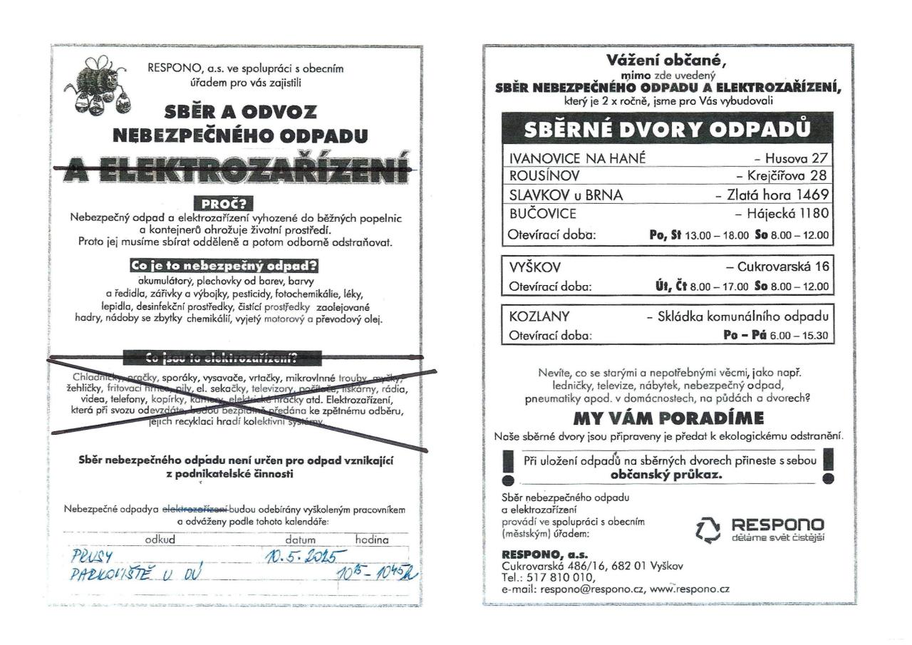 Oznámení o svozu nebezpečného odpadu