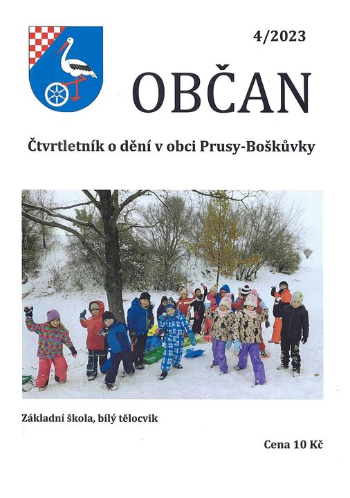 Právě vyšlo poslední letošní číslo Občana. Zakoupit ho lze na Obecním úřadě ve čtvrtek 21.12.2023 od 7:00 do 16:00 hodin a v pátek 22.12.2023 od 8:00 do 12:00 nebo ve stánku s pečivem v rámci otevírací doby.