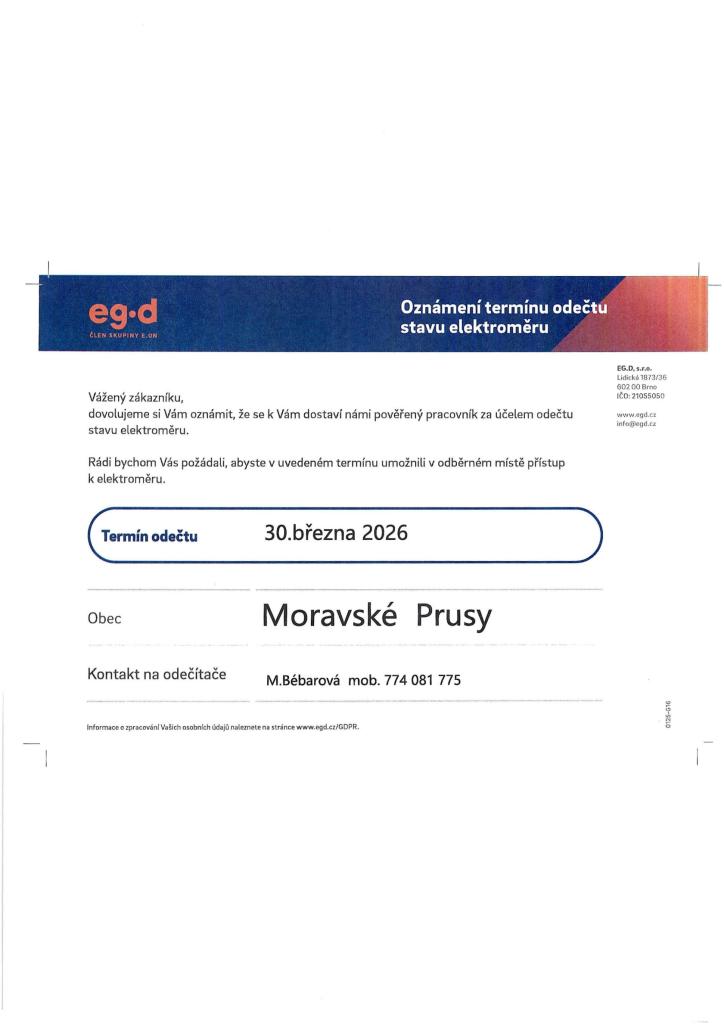 Moravské Prusy- Odečty