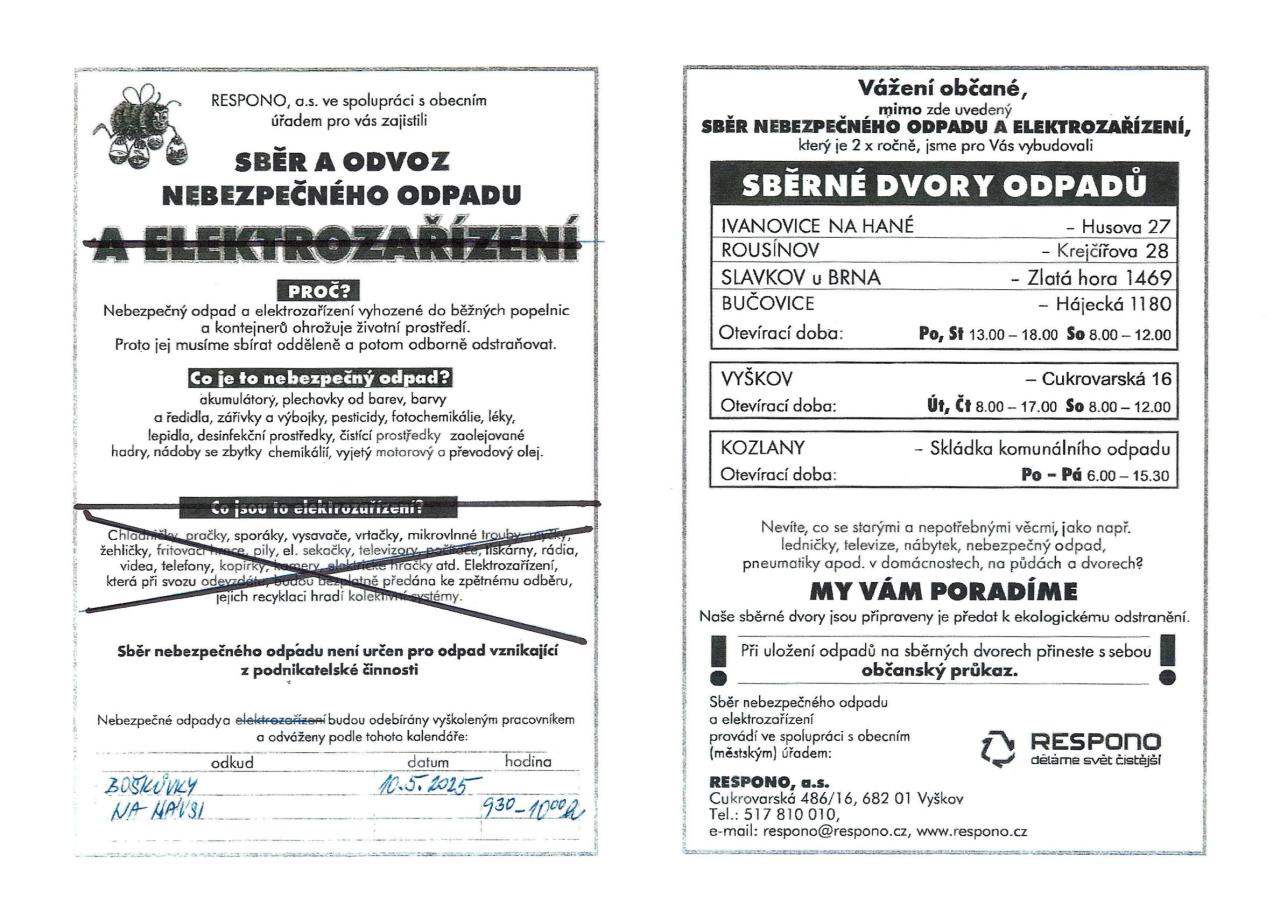 Aktuálně - Oznámení o svozu nebezpečného odpadu
