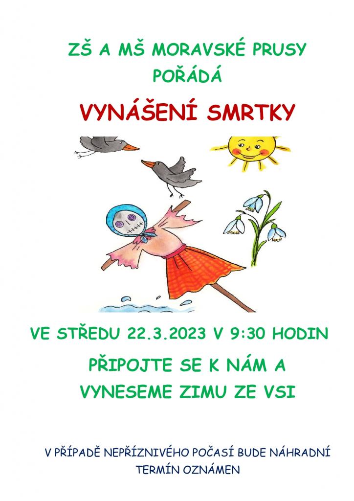 Základní škola a Mateřská škola Moravské Prusy zve na vynášení Smrtky ve středu 22. března s odchodem od školy v 9.30 hod.